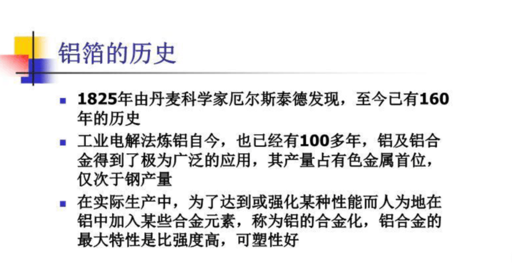 ① 合金为1235、 8011、8079、145、1070② 厚度一般0.2~0.3mm③ 状态有H18、 H16、 H14④ 目前正在研发8111合金铝箔毛料